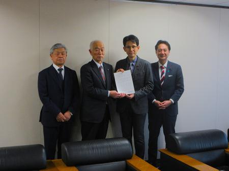 令和8年3月23日、全国町村議会議長会の松野唱平副会長(千葉県長南町議会議長)など地方議会三団体の代表は、「厚生年金への地方議会議員の加入を求める決議」の実現に向けて、要請活動を行いました。